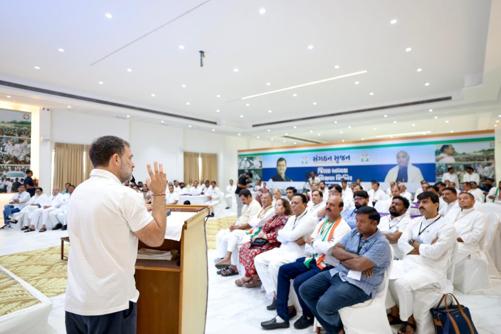 लोकसभा में नेता प्रतिपक्ष के नेता राहुल गांधी ने ‘संगठन सृजन अभियान’ (पार्टी संगठन को मजबूत करने का अभियान) के तहत कांग्रेस के जिला अध्यक्षों के प्रशिक्षण शिविर में अपने संबोधन के दौरान कहा कि भारतीय जनता पार्टी (बीजेपी) को उसके ‘मुख्य गढ़’ गुजरात में हराना महत्वपूर्ण है। साथ ही उन्होंने आश्वासन दिया कि चुनाव के लिए उम्मीदवारों का चयन करते समय उनकी राय पर भी विचार किया जाएगा।